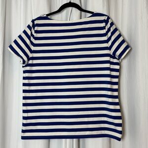 Talbots Striped Beaded Neckline Shirt Women’s 1X Blue White Nautical