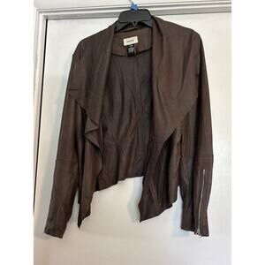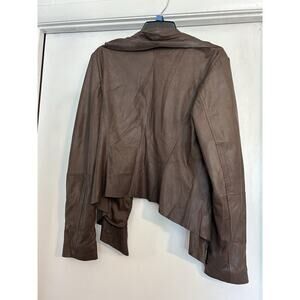 Neumann Marcus Brown Leather Open From Cascade Ruffle Zippered Sleeves