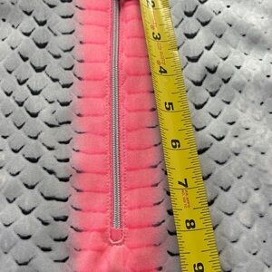 Features: Sand-up collar, 1/4 zip closure and a solid color strap running down the center of the front and back