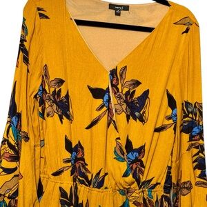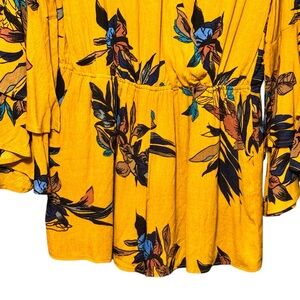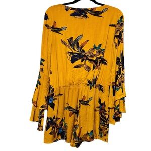 Very J Bohemian Mustard Floral Print Long Ruffled Layered Bell Sleeve Romper
