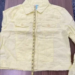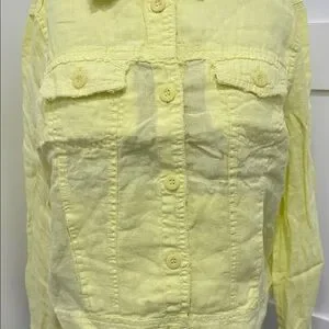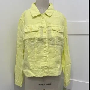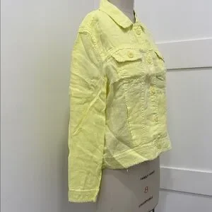 Anthony’s Resort Wear Yellow Linen Lightweight Frayed Edge Button Front Jacket Sz M