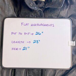 Great vintage condition. Some inconsistencies in the leather texture shown in the second to last pics. No holes or stains. Minimal signs of wear. Has shoulder pads. Full front zip. No size tag, Size L chosen based on fit and measurements in pics.