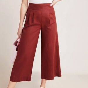 Anthropologie Buttoned Wide Leg Linen Cotton Pants in Rust Size 4