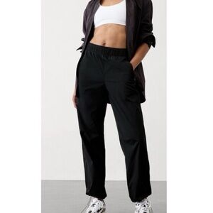 Athleta Rise Pant Black Small Relaxed Fit Track Pants Mid Rise Bungee Hem