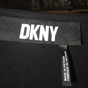 This DKNY top in size medium is new without tags. It features a ruched neckline with an off-center front buckle and puff sleeves. The ruffled design adds a touch of elegance. The tag was missing when received, and it has never been worn.