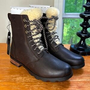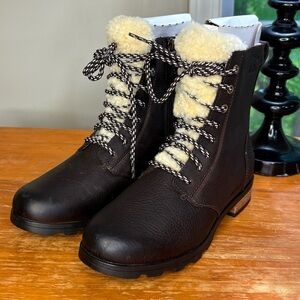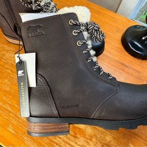 NWT Sorel Emelie Short Lace Cozy Leather Boots