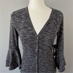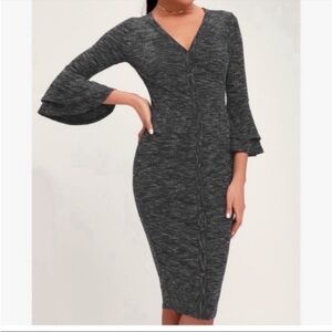 Lulu’s Jony Ribbed Button-Up Midi Sweater Dress Gray Space Dye