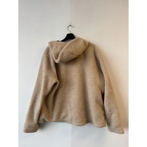 Eddie Bauer Jacket Womens 2XL Tan Sherpa Pile Fleece Hooded Zip Pockets Cozy