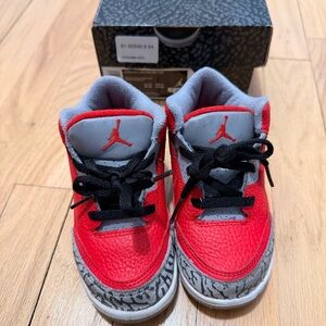 Jordan 3 Retro SE Fire Red Cement Grey Toddler Sneakers Size 9c