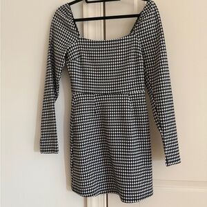 Francesca’s Mi Ami Houndstooth Square Neck Dress Size Medium