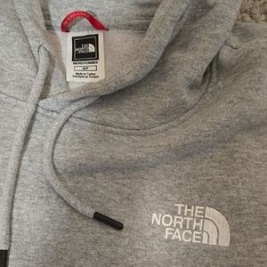 Classic light gray hoodie by The North Face. Features a cozy hood and front pocket. Ideal for everyday wear.