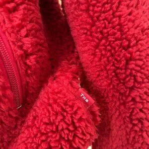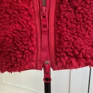 Perfect transitional piece for spring! A super cozy fleecy sherpa hoodie will be your go-to jacket during cool weather or for lounging at home. A gorgeous deep red colour to brighten your wardrobe. Great gently used condition.
