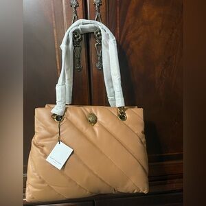 A signature crystal-encrusted eagle head embellishes a quilted leather shopper fashioned with a spacious interior for storing your daily essentials.