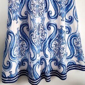 Soft surroundings white blue boho Beachy Cottagecore Lined Paisley Skirt M