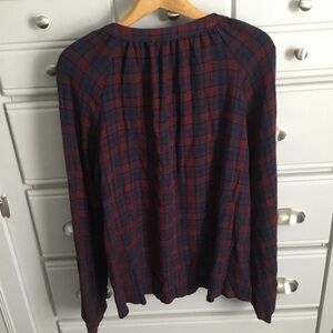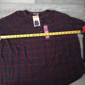 NWT BEARPAW PUCKERED WOVEN BLOUSE Red Blue Plaid XXL
