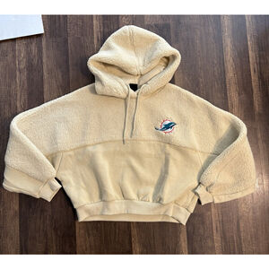 Miami Dolphins NFL Hoodie Crop Sherpa Cozy Tan Women's MEDIUM Team Apparel