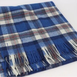 Vintage Pendleton Blue plaid scarf, 100% Virgin Wool, long blue winter scarf,