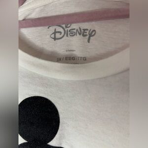 Classic Mickey Mouse design on a white tee. Features bold red accents. Front and back. Size 2X. Ideal for Disney enthusiasts.