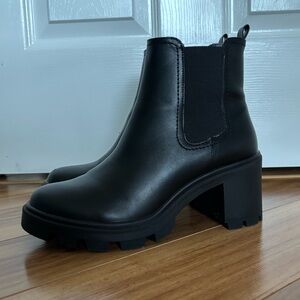 Chic black heeled boots with a sleek design. Perfect for versatile styling.