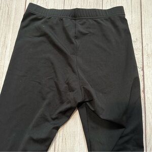 No size tag but fits like a S. Some stretch. Elastic waistband, mid rise, lightly fleece lined, black color. Soft and comfy. Worn once.