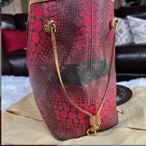 Yayoi Kusama x Louis Vuitton Red Waves Monogram Neverfull MM Tote with COA