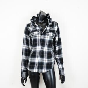 KMJ Kate Mchale Jensen Quarantina Flannel Plaid Shirt Ruffle neck size XS