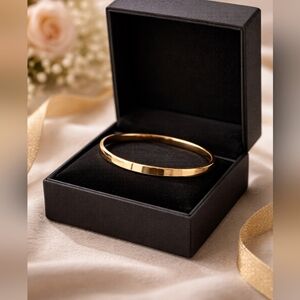Bracelet is gold colored. I do not know if it is gold plated. The glass is garnet colored, it may look darker in pics.
