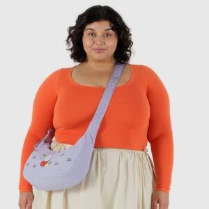 Brand new with tags and flawless! Practical doesn’t have to be boring. BAGGU’s Medium Nylon Crescent Bag is effortlessly casual and large enough to carry more than just the essentials. Wear it slung over your shoulder or crossbody for a hands-free experience. Complete with two interior pockets that make it easy to stay organized.