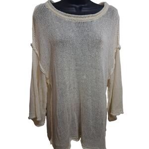 Pol Shirt Medium Cream Open Knit Top Lagenlook Relaxed Bohemian Casual Festival