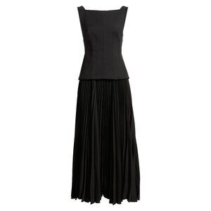 A sharp square neck tops this sleeveless maxi designed with a fitted seamed bodice and finished with an accordion-pleat skirt that sways with every step. The Acler Hollinshill transitions effortlessly from daytime celebrations to evening soirées, pairing beautifully with sleek heels or minimalist flats. Its versatility and chic allure make it a sought-after staple for any modern wardrobe.
