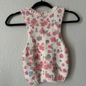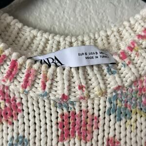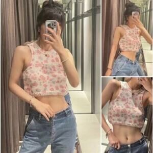 Zara Floral Knit Crop Top Pink Beige Size Small