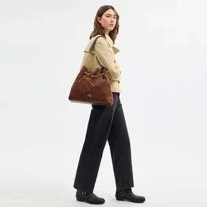 Coach NWT Honey Brown Suede Evelyn Large Shoulder Bag