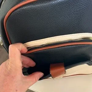 Make offer! Will unlist after a week to sell in yard sale ! style with this sleek black and cream backpack. Perfect for daily use, it combines functionality with a modern design. Pretty good size