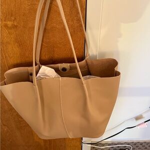 This elegant tan tote bag is perfect for everyday use. Its spacious design and sturdy handles make it a versatile accessory for any occasion. Purchased only to take out of the box and change mind.