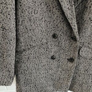 Step out in style with this elegant herringbone pea coat. Its classic black and white design adds a touch of sophistication to any outfit. 100% polyester