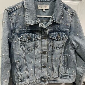 Women's Pearl Studded Jean Jacket size S