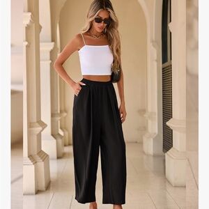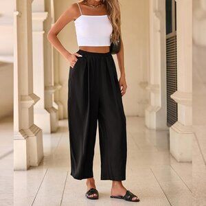 linen pants, capri pants, cropped trousers, wide leg pants, summer wear, beach pants, casual style, breathable fabric, everyday outfit