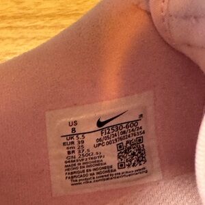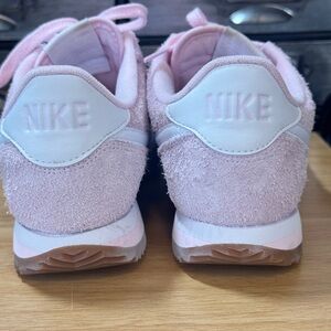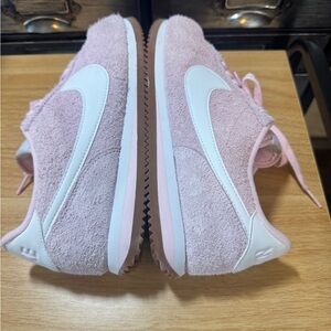 🩷🤍🩷🤍 These Pink Suede and white leather swoop Nikes are very much in style. These are considered “old” school. Have only worn them 4 or 5 times and you can see from the bottoms as they basically look new. Size 8, comfy and will keep you running all day. These sneakers are in Great Condition! This is a shoe that can go with pretty much anything. EUC 📍PLEASE LOOK AT ALL PICTURES BEFORE PURCHASING📍