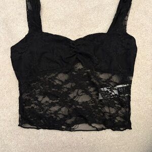 Elegant black lace top. Features intricate lace design. Size M black bralette. 2inch stretch width
