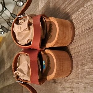 New!! Mia leather peep toe clogs. Made in Sweden. Slight wrinkling on one shoe as shown in last photo. Size 40