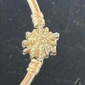 Stylish silver bracelet with a unique charm. Ideal for any occasion. Only worn a couple of tubes and I received another one. It’s in like new condition in its original box but I have a pink box for sale if you’d like to bundle.