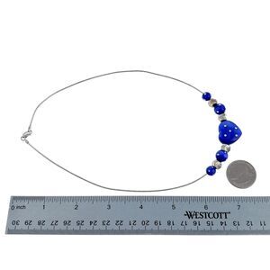 Title: Vintage Italy Sterling Silver 925 Blue Glass Polka Dot Heart Necklace 18"