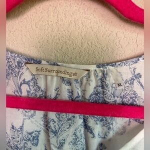 Soft Surroundings Nimes Blue & White Toile Embroidered Floral Tunic XL