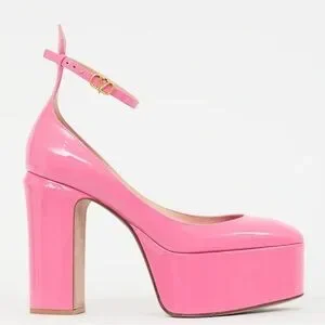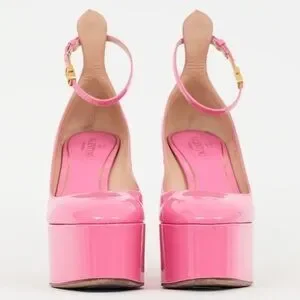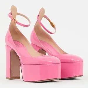 Valentino Tan-Go VLogo Pink Patent Leather Platform Block Heel Pumps