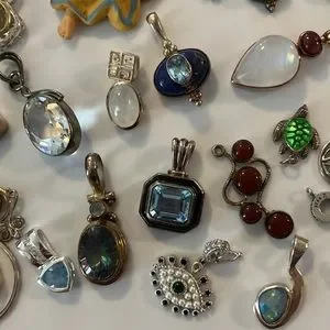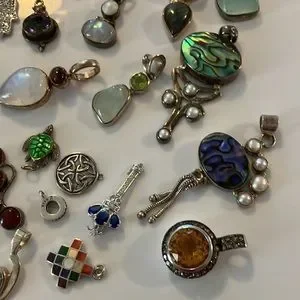 Big 46 piece lot of ladies assorted pendant/charms, most are sterling silver, and there is crystals and gemstones. I am selling all my jewelry. This is my last bunch of pendants and charms to be sold all together only!!! This is a very best list listing price!🌻