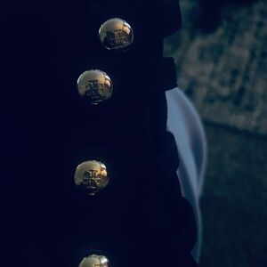 Elegant black booties featuring gold buckle accents. Ideal for chic styling.