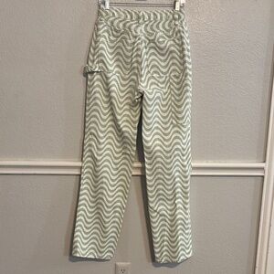 Fun carpenter jeans featuring a wavy green and white design. Ideal for a standout style. Very high-rise.