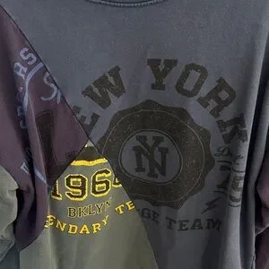 Bold graphic design with New York and sports motifs. Comfortable long sleeve fit. Fits oversized
