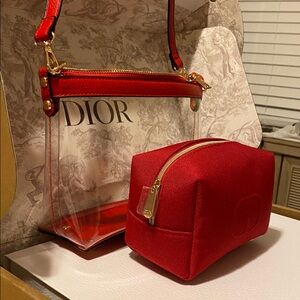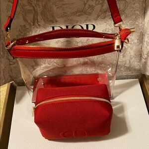 I added a Original Dior Pouch inside of a NON BRANDED PVC Crossbody & Shoulder Clear bag