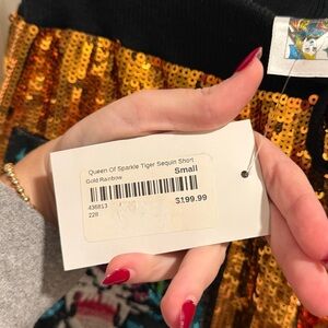 QUEEN OF SPARKLES Gold Sequin Tiger Shorts